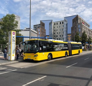 Neben den inzwischen allgegenwärtigen Citaros sieht man auch immer mal wieder die in Deutschland eigentlich recht seltenen Scania-Gelenker.