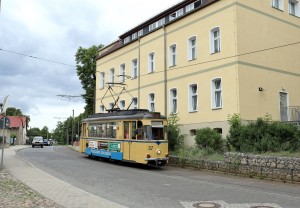 Gotha-Zweiachser auf einer eingleisigen Strecke mit Kopfsteinpflaster. - Wenn das nicht DDR ist, weiß ich auch nicht.