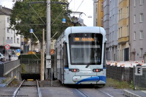 Am 11.10.2021 ist die Variobahn 530 unterwegs zwischen Bergmannsheil und Friederikastraße; eingesetzt auf der Linie 318 nach Dahlhausen (S). |