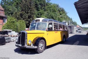 Der hierzusehende Wagen ist ein Saurer/FHS L4C50 Baujahr 1949 der hauptsächlich im Wallis im Einsatz war. Heute steht er bei Moser Reisen, einem Partnerunternehmen von PU Motrag als Reisewagen zur Verfügung. |
