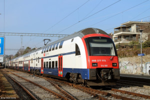 Der DTZ 011 ist der erste der Serie, der im Rahmen einer Kastensanierung ein leicht geänderter Anstrich erhält. Auffallendste Details sind das SBB-Signet (anstelle der ausgeschriebenen Lettern), und der weisse Kontrastrahmen neben den Türen für die leichtere Erkennbarkeit sehbehinderter Personen. |