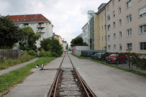 Haltestelle Linke Brückenstraße im August 2025 vom stadtauswärtigen Gleis in Richtung Peuerbachstraße gesehen. Im Rahmen des Ausbaus der Linzer Lokalbahn von Linz Hauptbahnhof nach Rottenegg sollen die Straßenbahn-Linien 1 und 2 zwischen Linke Brückenstraße und Peuerbachstraße unterirdisch verlegt werden. Die Tunneleinfahrt Richtung Peuerbachstraße wird sich hinter der Haltestelle Linke Brückenstraße befinden. |
