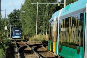 zwischen Zentralhaltestelle und Brückenstraße bei der Begegnung mit Tw 610. |