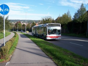 Hier ein Integro des RAB-Subunternehmers Bühler, in Ravensburg an der Marienburgerstraße. Eine Straße weiter unten (auch Marienburgerstraße) fuhr früher der Stadtverkehr (Linie 1, 2) in Richtung Weststadt ab, in Gegenrichtung von der Meersburger Straße, jetzt fährt der Bus in Richtung Weststadt allerdings auch von der Meersburger Straße ab. |
