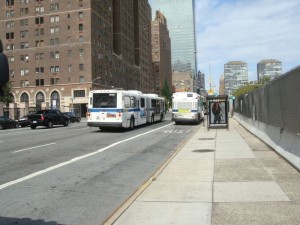 Die M7 (entlang der 7 Av) hier am späten Abend am Time Sqare |