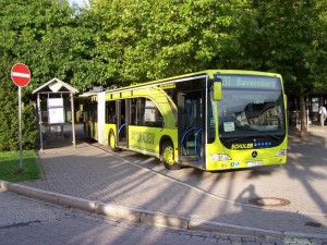 Hier der neue Citaro G II von Schuler in Weingarten an der Post. Dieser Bus wurde als Ersatz eines O 405 G's gekauft, der nun nach Ratzeburg verkauft wurde. Dieses Fahrzeug wird ausschließlich für den Schülerverkehr benutzt. Neben den 5 Firmeneigenen Schulbuslinien in und um Bodnegg verkehrt dieses Fahrzeug auch regelmäßig als Schulbus von Ravensburg nach Bodnegg. |