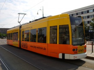 Tram mit Werbung für Wohnen |