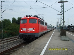 | 110 243 mit Wärmepumpenheizungszug in Karlsruhe Hbf |