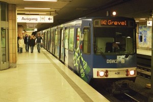 Eine Ex-Bonner Doppeltraktion in der Haltestelle Stadtgarten. Wagen 401 hat noch die alten Bonner Drucklufttüren. |