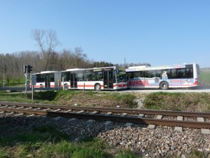 Zur Abwechslung mal keine Seelinie sondern der Linzgaubus aus Richtung Immenstaad nach Überlingen Landungsplatz. Er ergänzt sich mit der Seelinie in der Hauptverkehrszeit zu einem 15-Minuten-Takt zwischen Überlingen und Oberuhldingen und befindet sich auf dem Bild auf Umleitungsstrecke zwischen Birnau, Wallfahrtskirche (Ersatzhaltestelle) und Nußdorf, Dorfgem.haus. |