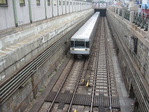 Eine Stadtbahntraktion beschildert als Linie G Gürtel-Heiligenstadt (heute Teilstrecken der U-Bahnlinien U4 und U6) im Straßenbahnmuseum Erdberg, welches auch schon für Musikvideos zweckentfremdet wurde. |