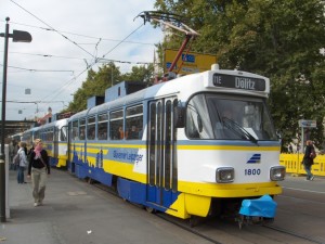 auf der Behelfsbrücke über die Eisenbahnstrecke unterwegs Richtung Alte Messe. |