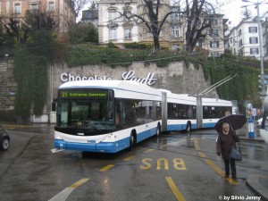 Die 24.7m langen Hess Doppelgelenktrolleybusse kamen für die VBZ gerade rechtzeitig. Die Frequenzen der Linie 31 (früher Tramlinie 1) überstiegen die angebotene Kapazität bei weitem. Sogar heute ist es im 31er den Tag hindurch schwer einen Sitzplatz zu ergattern. |