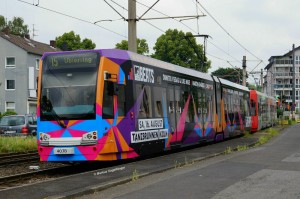 Niederflurwagen 4078 trägt seit heute (17.06.2014) eine neue Ganzgestaltung für "MTV mobile Beats". |