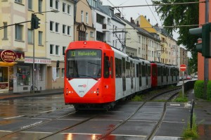 Die modernisierten B-Wagen 2426 (ex 2196) & 2428 (ex 2199) durften sich heute (21.08.2014) zum ersten Mal auf der Linie 3 austoben. Hier zu sehen in Bocklemünd. |