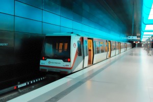 Aufgrund der Bauarbeiten zur Streckenverlängerung - und auch die Verlängerung der Verlängerung ist jetzt in der Planung - direkt hinter der Haltestelle wurde der Kurzzug-Haltepunkt in die Bahnsteigmitte verlegt. Eine Weiterfahrt zum Bahnsteigende ist nur nach Drücken der Freigabetaste möglich, insofern praktisch, dass auf der U4 eh nur Kurzzüge fahren. |