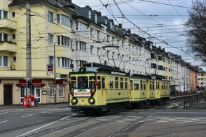 Der Museumszug "Finchen" auf der Kreuzung Aachener Str./Gürtel am 06.12.2015. |
