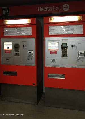 Das ist wiederum einer der jüngsten U-Bahnhöfe, eröffnet 2006. Alles ein bisschen moderner hier, wie man sieht. Als Messe- und Expo-Haltestelle ist sie auf große Fahrgastmassen vorbereitet - und das ist auch vernünftig, denn bis man mit der U-Bahn bis nach Rho gelangte, musste man in der Regel mindestens zwei Züge durchfahren lassen. Kein Wunder bei zwei Großmessen und noch die Expo gegenüber… |