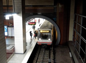 Diesmal aus einer etwas anderen Perspektive, wie die Bahn aus dem Bahnhof ausfährt. |