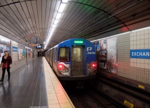 Blick in den Tunnel aus Richtung 9th Street. Dieser wird durch den Lichtschein des Bahnsteigs angeleuchtet.