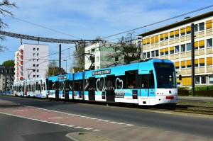 4044 wurde eine neue Ganzreklame "Dom Kölsch" angebracht, nachdem die alte Ganzreklame "Sion Kölsch" entfernt wurde. Hier zu sehen in Weiden am 05.04.2017. |