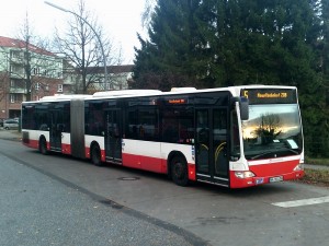 Ein M5-Kurzläufer, die nur mit normalen Gelenkbussen unterwegs sind und in der Schleife neben dem ehemaligen Betriebshof Lokstedt kehren. |