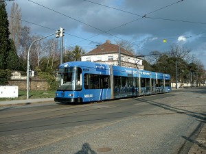 Dresdens "60.Stadtbahnwagen", inzwischen sind es eh 115, sodass die Zahl 60 sehr veraltet ist, jedenfalls kommt dieser Wagen gerade aus der Schlömilchstraße heraus, Ri. Betriebshof Tolkewitz.