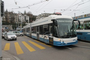 Stadtbus Winterthur beabsichtigt im Jahre 2022 Doppelgelenkige Trolleybusse anzuschaffen. Derzeit läuft das Ausschreibeverfahren. Dazu gehören auch Testfahrten anderer Verkehrsbetrieben auf dem Winterthurer Trolleynetz. Anfang Januar 2021 weilte deshalb ein Hess Lightram 5 der VBZ in Winterthur für Probefahrten. Im Frühling 2021 soll dann der defnitive Entscheid fallen ob und vom wem die 25m langen Trolleybusse geliefert werden sollen. |
